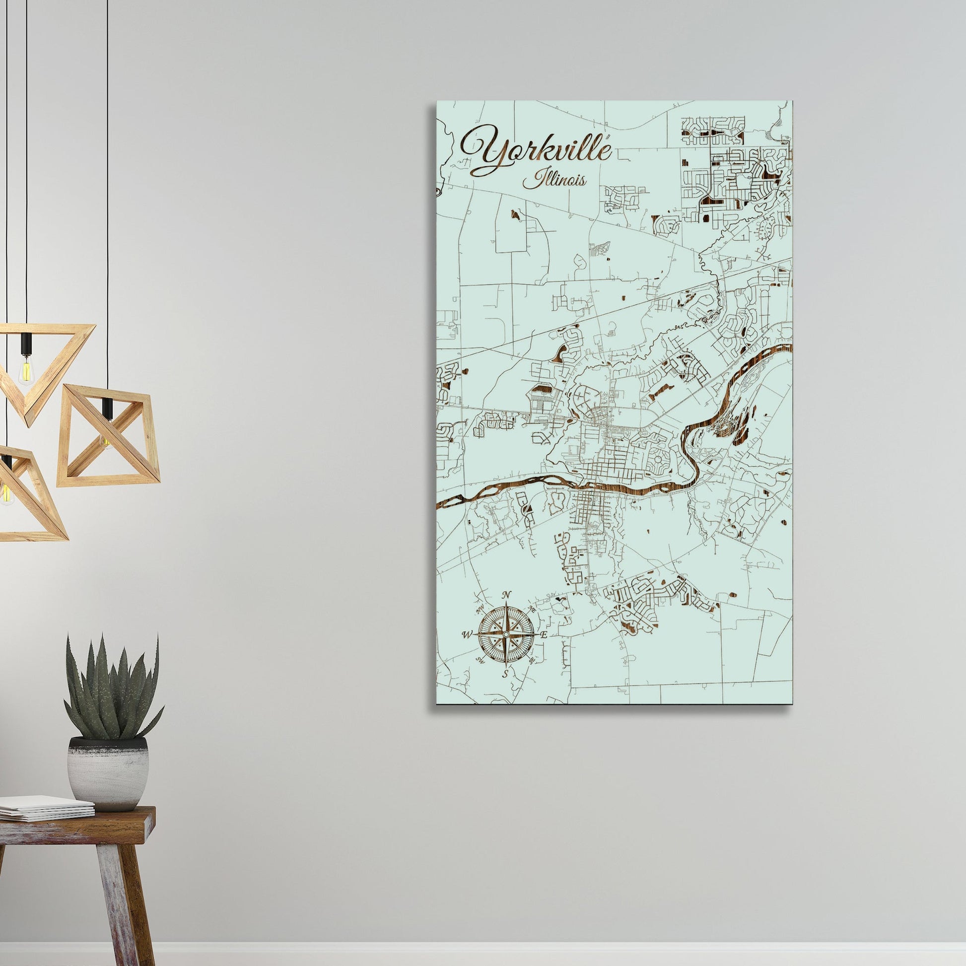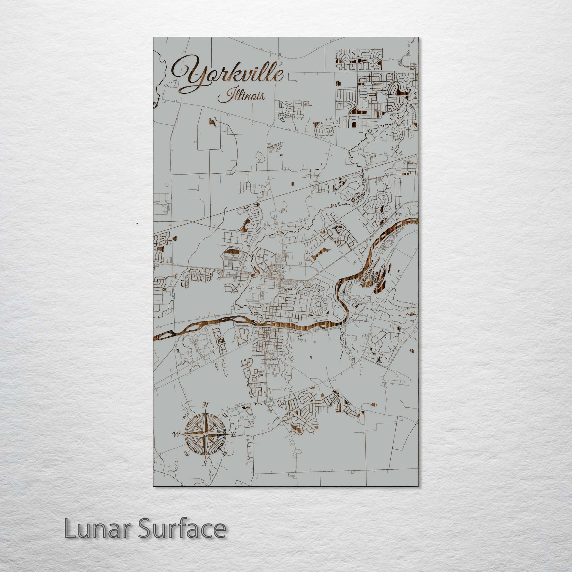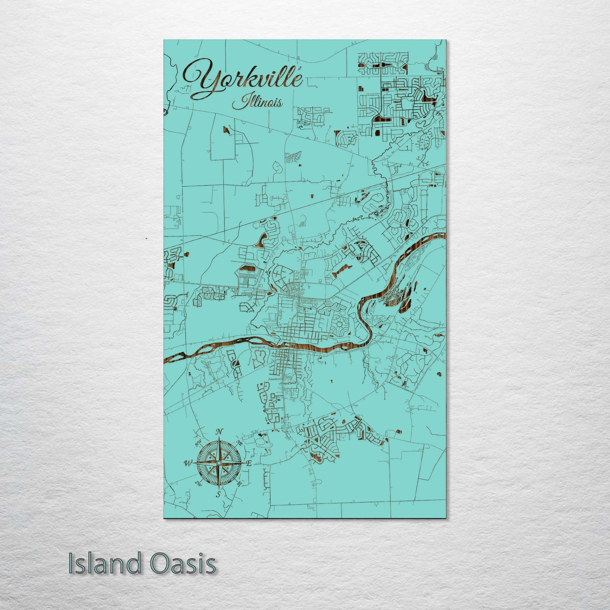 This is a street map of Yorkville, IL designed by Fire & Pine artists.