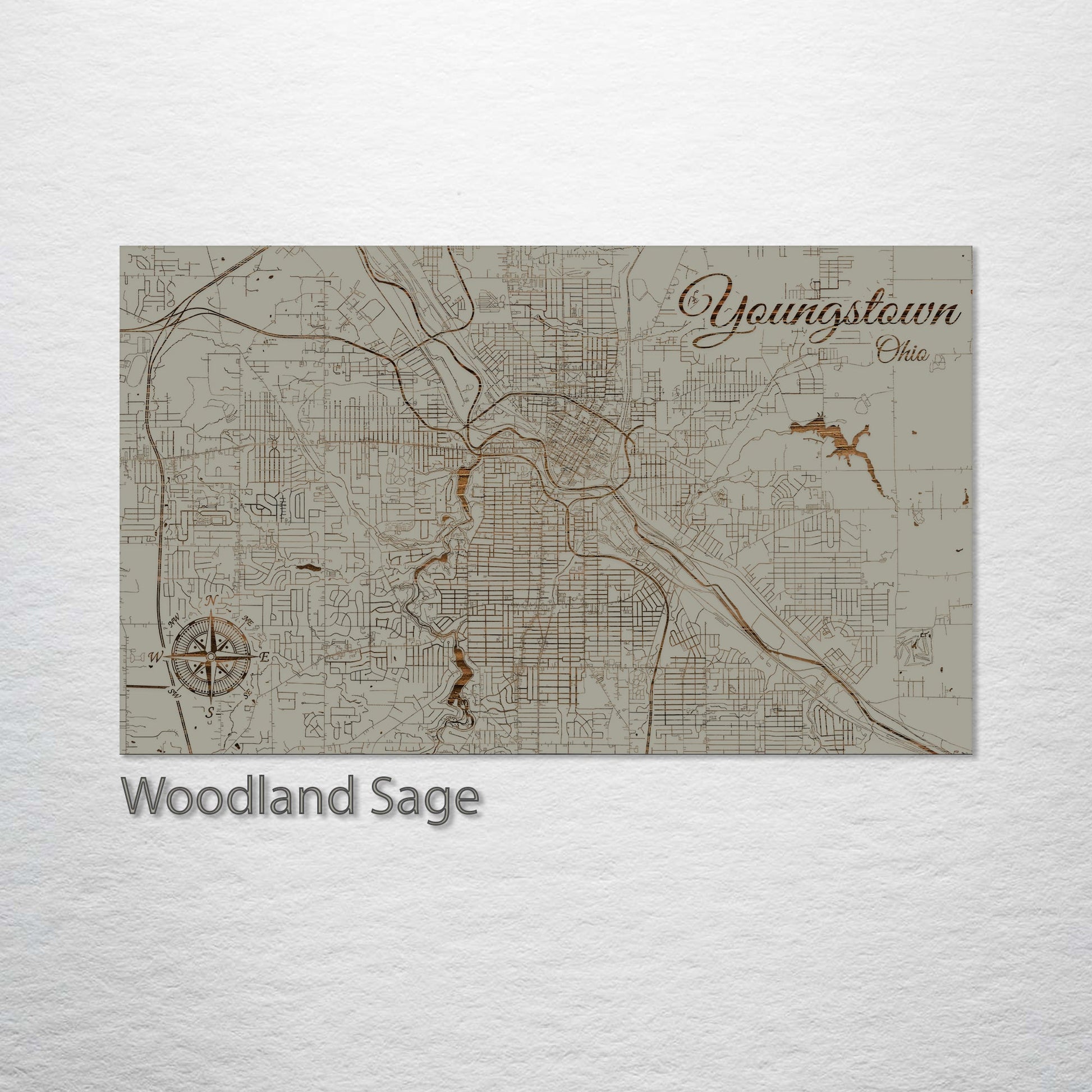 This is a street map of Youngstown, OH designed by Fire & Pine artists.