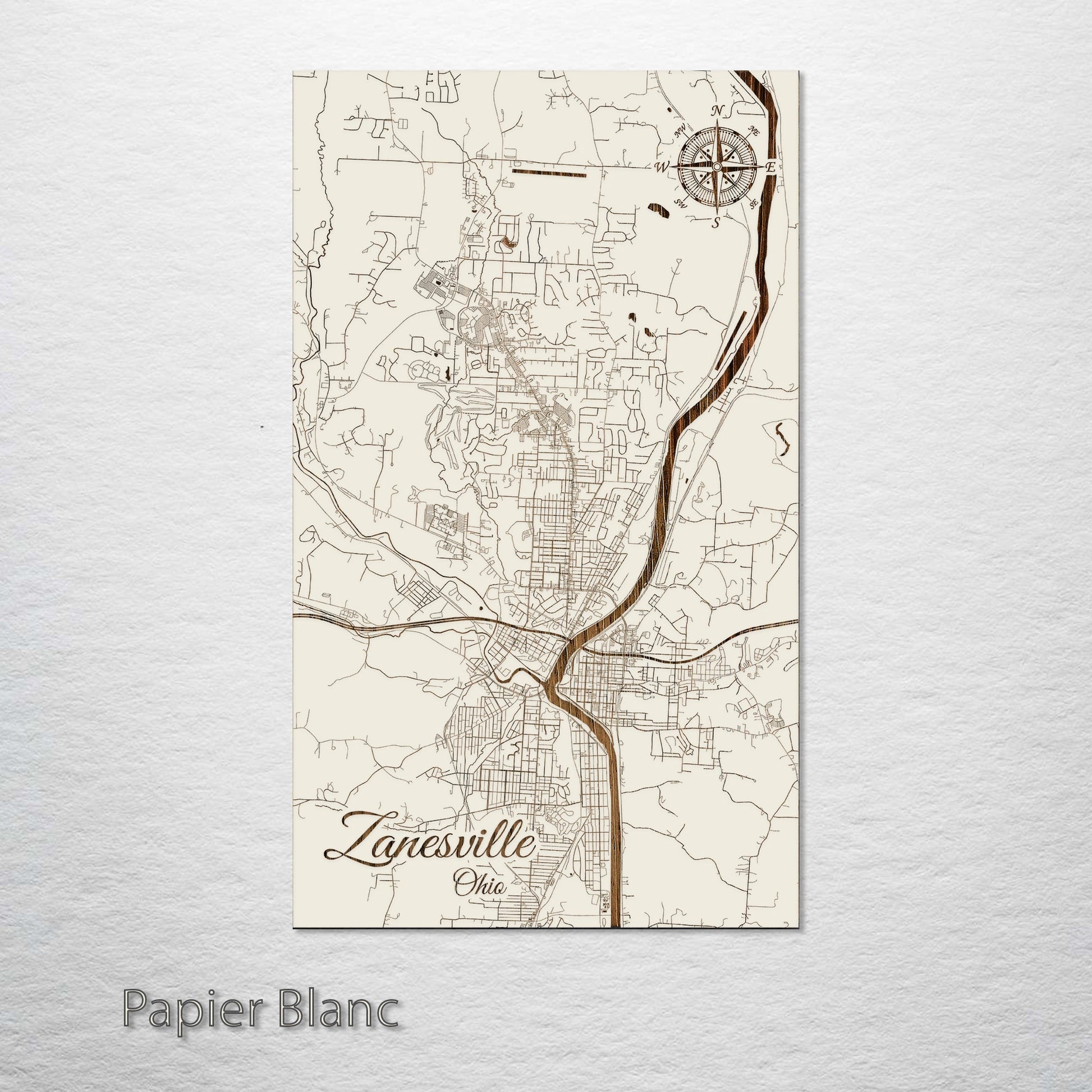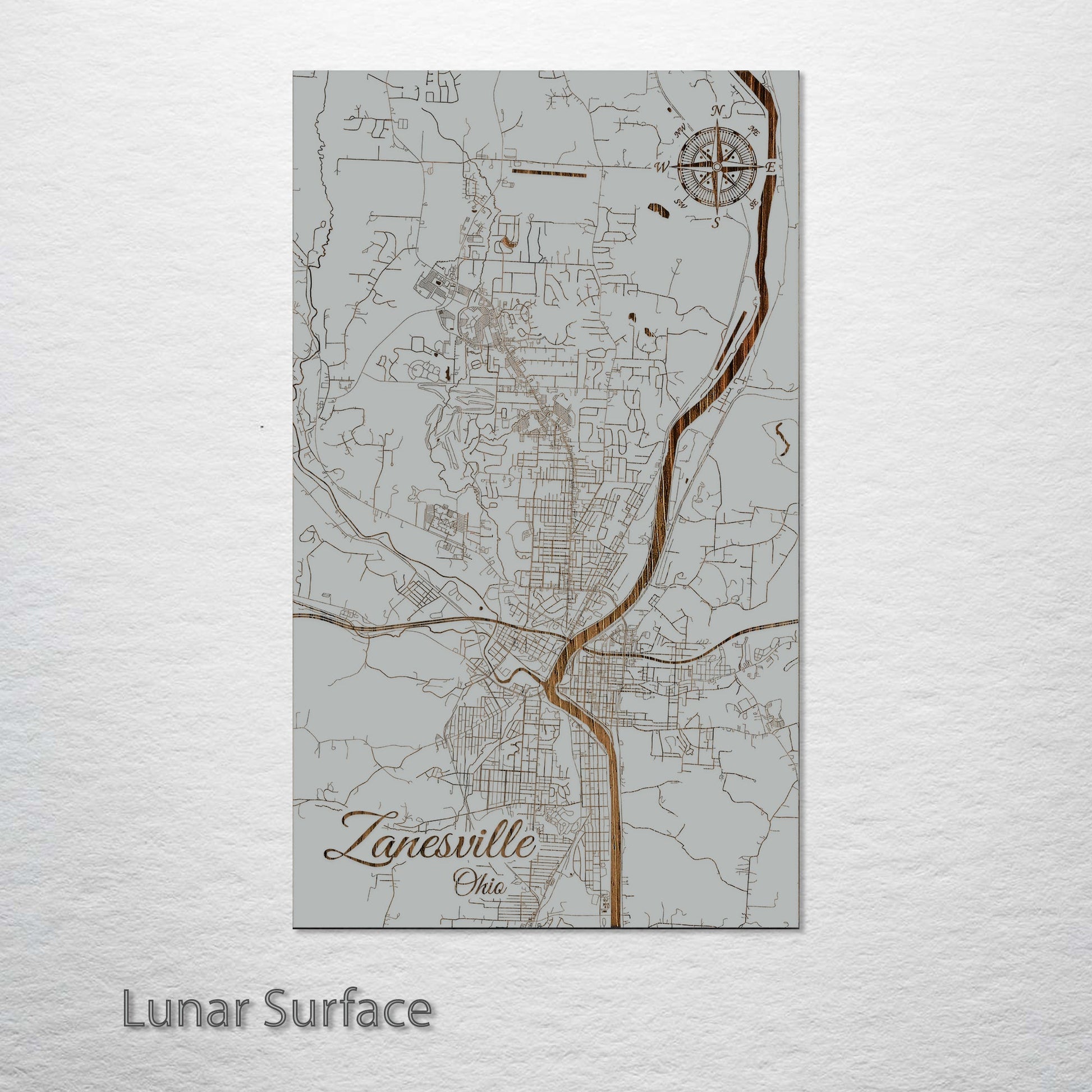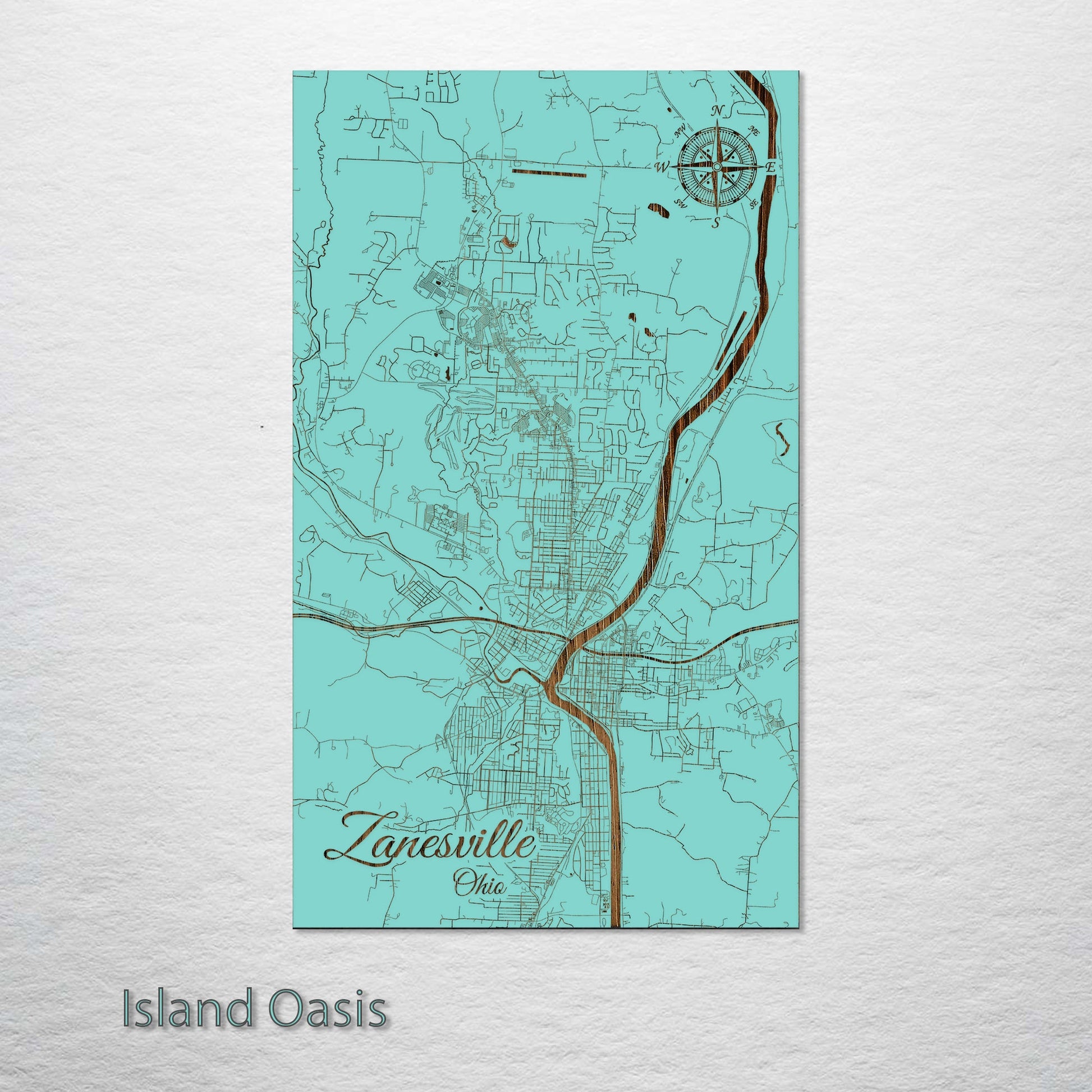 This is a street map of Zanesville, OH designed by Fire & Pine artists.
