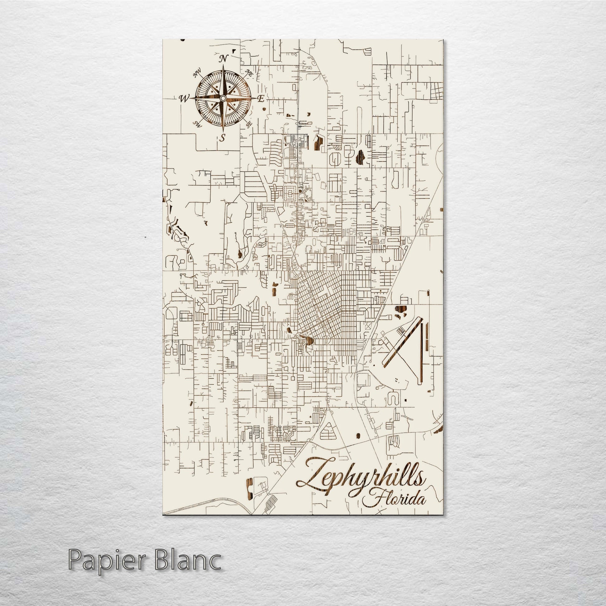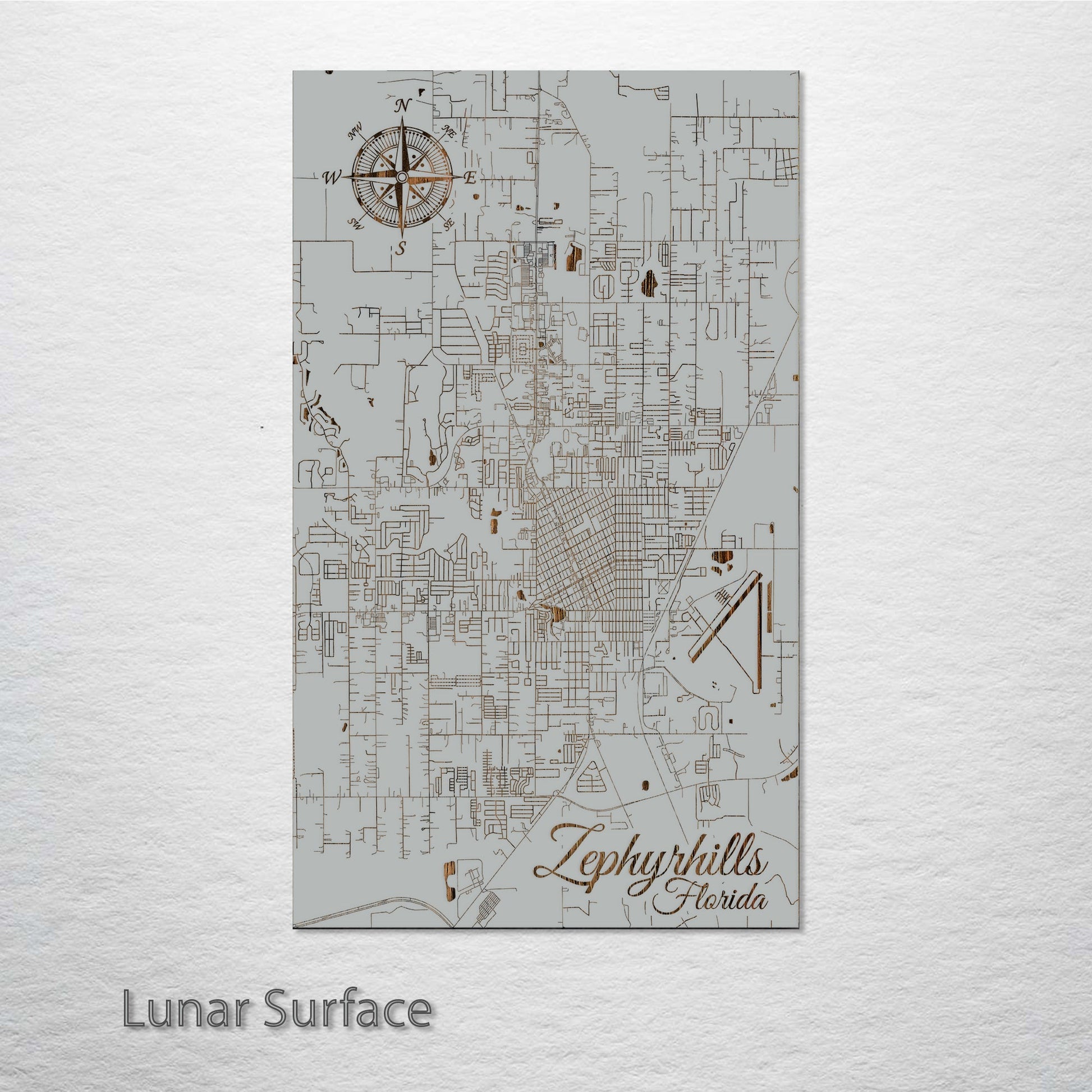 A Masterpiece for Map Enthusiasts: This wood-engraved Zephyrhills, Florida street map is an exceptional addition to any collector's assortment. Crafted from high-quality pine wood, it brings the intricate details of Zephyrhills' streets to life, creating a standout work of art. It's the perfect choice for those who have a passion for maps and cityscapes.